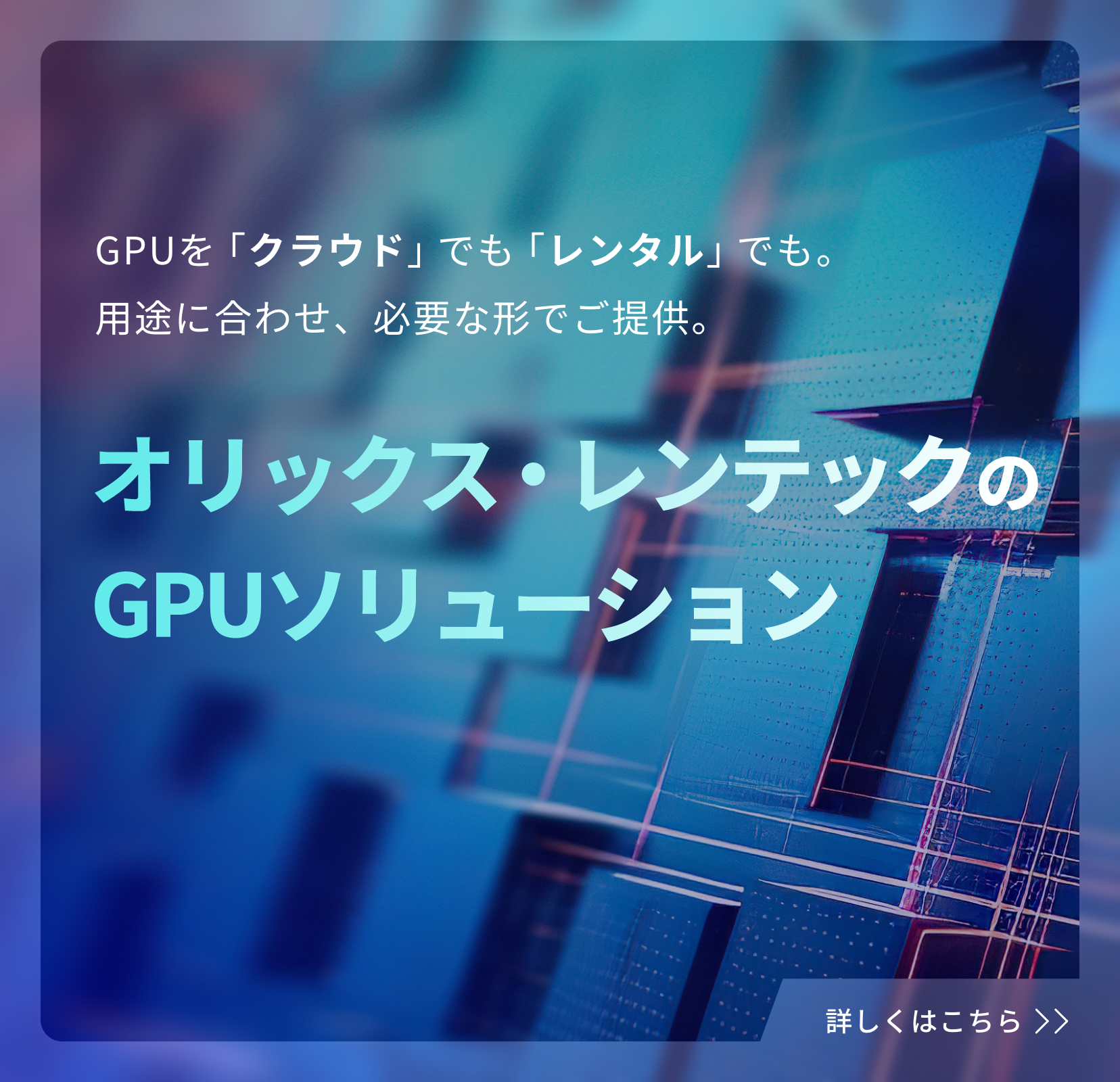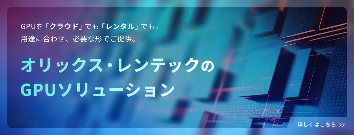 GPUソリューションオリックス・レンテックでは、GPU単体・マルチGPUサーバーのレンタルから、GPUクラウドサービスまで、用途に合わせて選べるソリューションを提供します。